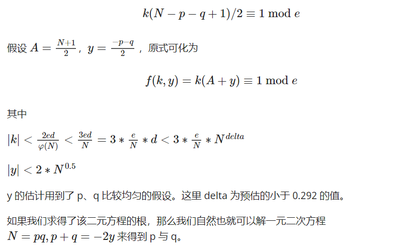 # you need to be a lattice master to tweak these t = int((1-2*delta) * m) # optimization from Herrmann and May X = 2*floor(N^delta) # this _might_ be too much Y = floor(N^(1/2)) # correct if p, q are ~ same size