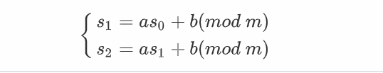 # In[29]: deflcg(seed, a, b, m): x = seed % m whileTrue: x = (a * x + b) % m yield x