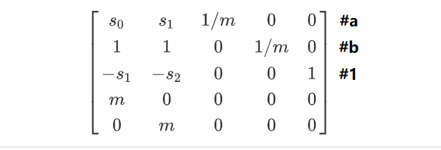 A = Matrix([ [s0 ,s1 ,1/m ,0 ,0 ], [1 ,1 ,0 ,1/m ,0 ], [-s1 ,-s2 ,0 ,0 ,1 ], [m ,0 ,0 ,0 ,0 ], [0 ,m ,0 ,0 ,0 ] ]) A = A.LLL() a = None b = None for l in A: if l[0] == 0and l[1] == 0: if l[-1] == 1: a, b = l[2] * m, l[3] * m elif l[-1] == -1: a, b = -l[2] * m, -l[3] * m else: continue ifnot a ornot b: raise ValueError("[*] No solves") a %= m b %= m