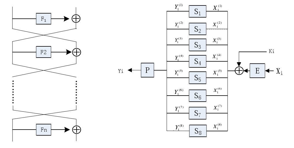 下图即为Feistel-SP结构的通用模型,其中F函数是SP结构