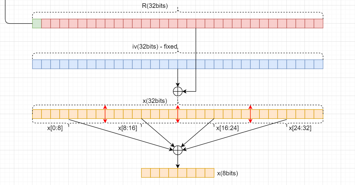 if __name__=="__main__": l = lfsr(KEY,MASK,LENGTH) r = '' for i in range(63): b = 0 for j in range(8): b = (b<<1)+l.next() r += pad(bin(b)[2:]) with open('output','w') as f: f.write(r)