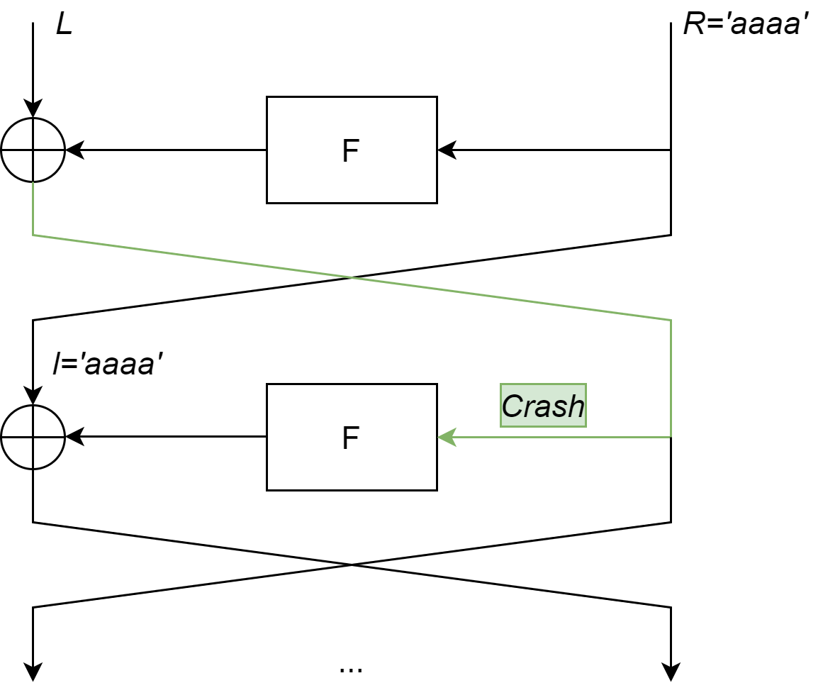 f = open('ciphertext', 'r') cipher = unhexlify(f.readline().strip()) prefix_a = [] for i in range(65536):     _ = f.readline().strip().split(' ')     prefix_a.append((_[0], _[1])) suffix_a = [] for i in range(65536):     _ = f.readline().strip().split(' ')     suffix_a.append((_[0], _[1])) prefix_a_ct_right, suffix_a_ct_left = set(), set() prefix_a_ct_back, suffix_a_ct_back = dict(), dict() for i in range(65536):     prefix_a_ct_right.add(prefix_a[i][1][8:])     prefix_a_ct_back[prefix_a[i][1][8:]] = i     suffix_a_ct_left.add(suffix_a[i][1][:8])     suffix_a_ct_back[suffix_a[i][1][:8]] = i crash = prefix_a_ct_right & suffix_a_ct_left pairs = [] for _ in crash:     i, j = prefix_a_ct_back[_], suffix_a_ct_back[_]     pairs.append((prefix_a[i], suffix_a[j])) for _ in pairs:     print(_)